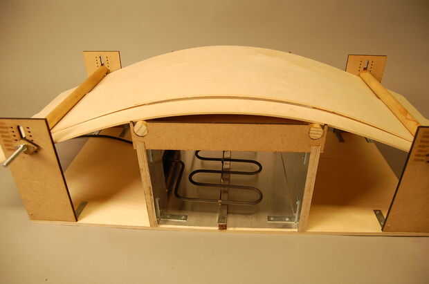 Es una máquina para doblar PMMA (vidrio orgánico).