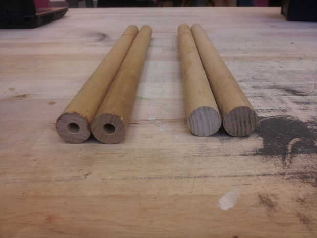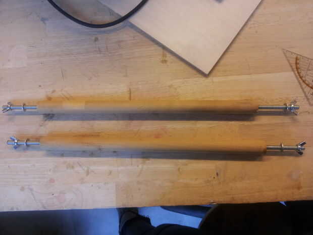 Foto 2 - Utilizar el torno para perforar agujeros de 8mm y 30mm en ambos lados de dos rollos