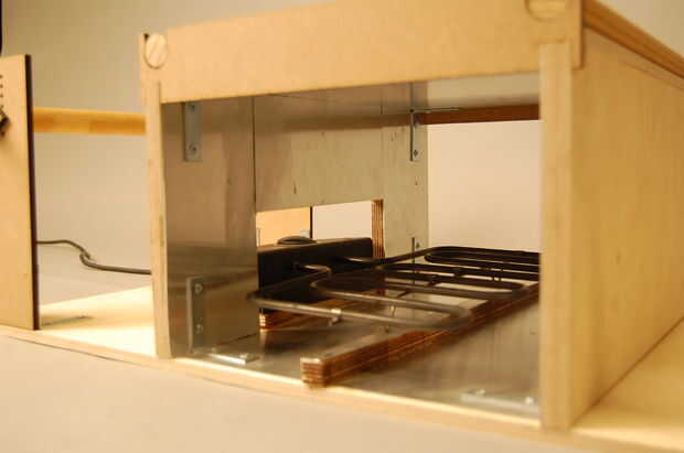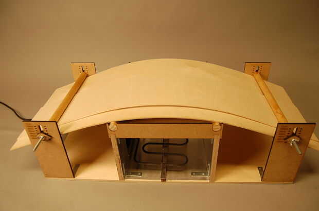 Esta lámpara de escritorio fresco se hace con LED franja de luces y arce. Cuenta con un diseño muy simple donde la madera está realmente en foco y tiene un control remoto que se conecta a la parte posterior de la lámpara. Esta lámpara sería genial en