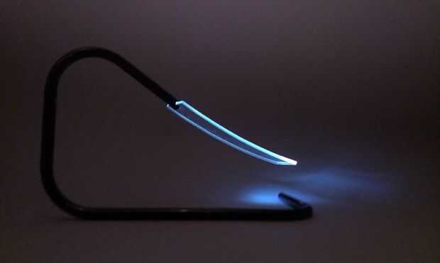 Esta lámpara de escritorio fresco se hace con LED franja de luces y arce. Cuenta con un diseño muy simple donde la madera está realmente en foco y tiene un control remoto que se conecta a la parte posterior de la lámpara. Esta lámpara sería genial en