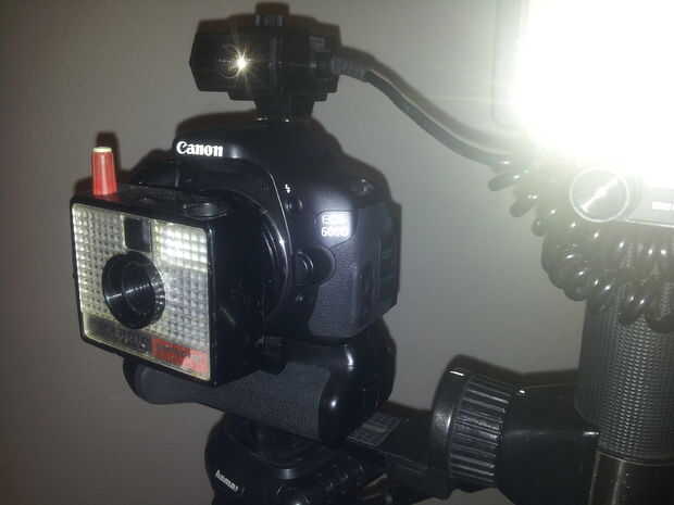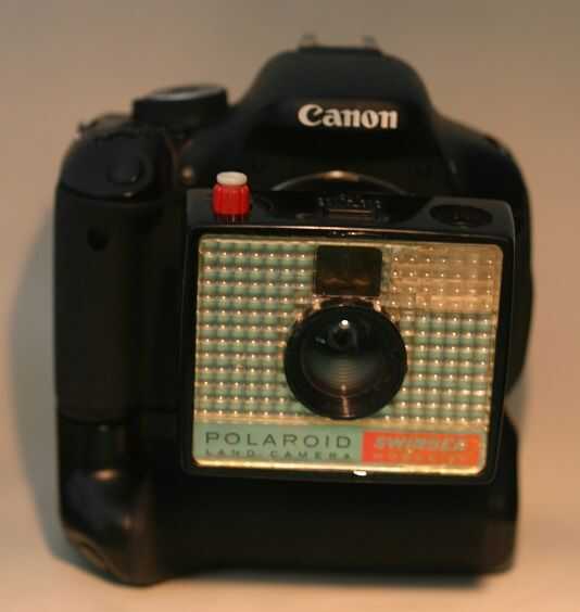 Modelo de Swinger la cámara Polaroid Land 20 a lente réflex digital de Canon EF