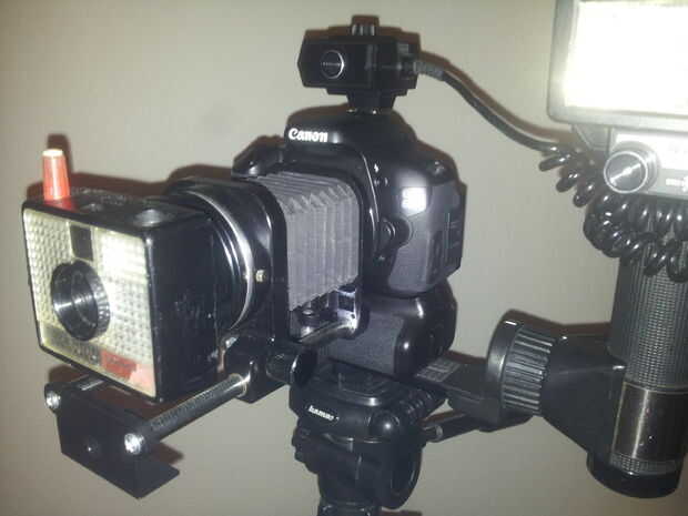 Compartiré con usted cómo hice una Polaroid Land cámara Swinger modelo 20 para Canon DSLR lente EF.