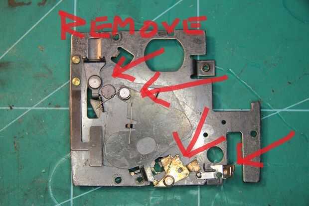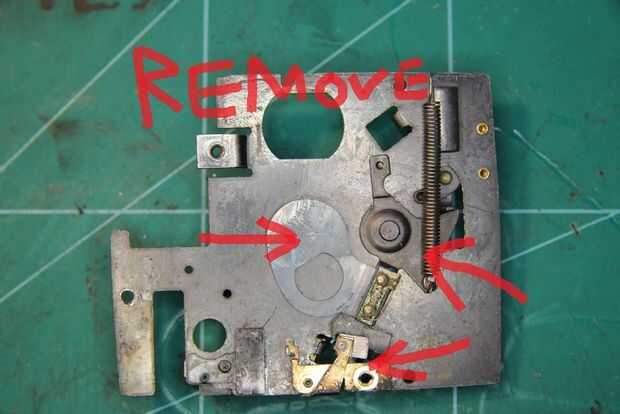 Retire el obturador, resortes y contactos eléctricos de la placa metálica.