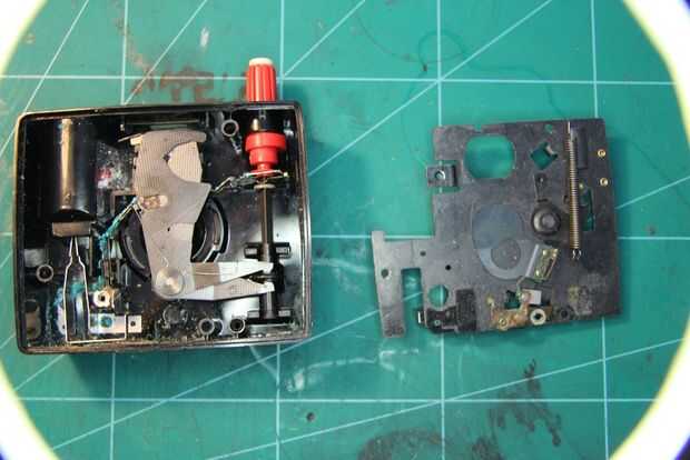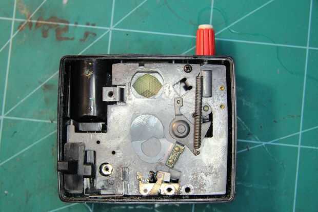 Desenroscar el tornillo que sostiene el plástico de la parte posterior de la lente, retírela. Destornille los tornillos sosteniendo el metal de la placa y lo elimine. Ahora tienes una pieza de plástico negro, la pieza de matal y la Asamblea de lente con la lente, abertura y así sucesivamente.