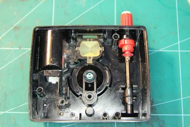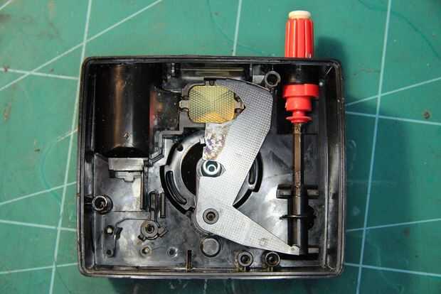 Poner la barra de selector de abertura e inserte en la cubierta de la lente. Gire la manera posible en la dirección de las agujas del reloj . Poner el cilindro negro pequeño en la barra. Ver la imagen. Si lo haces de esta mal no tienes una apertura completamente funcional.