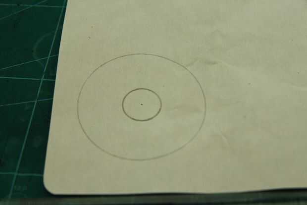 Encontrar un UV filtro con rosca de filtro de su elección (yo escogí 52 mm.) Quite la tapa y medir el interior diámetro de la rosca para filtros masculino. Utilice el compás para dibujar un círculo en un papel. Mida el diámetro exterior del soporte del lente de plástico. Dibujar el círculo dentro del círculo más grande.