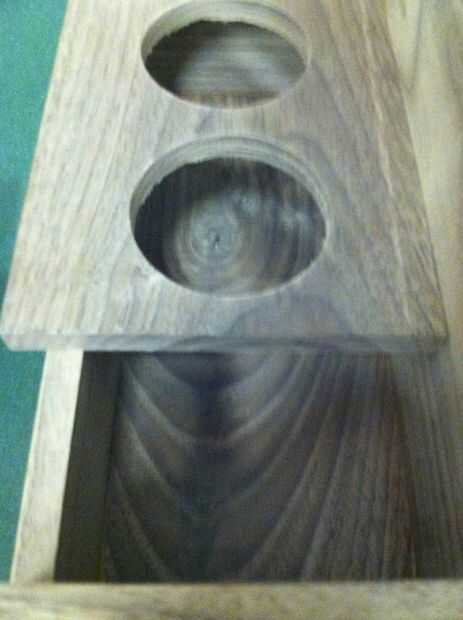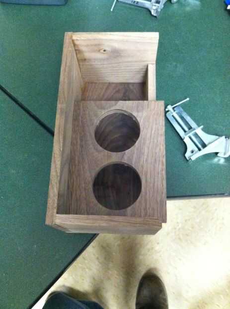Dos 3" agujeros perforados en una pieza como el sostenedor de taza y había pegado en su lugar.