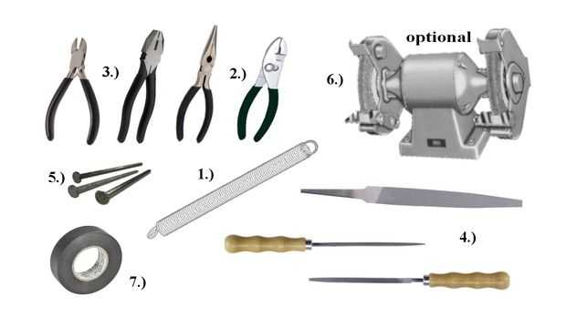 4.) un archivo de clave de hilo fino y una lima plana de metal