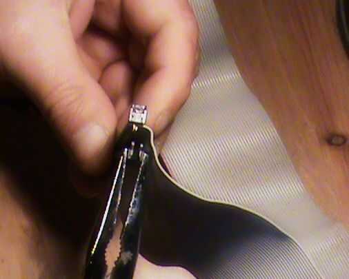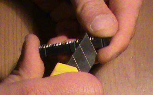 Con un cortador corta la prominencia (tenga cuidado de hacer esto) y reducir el grosor de los lados externos un medio utilizando papel de lija, este paso es importante de lo contrario puede ser difícil insertar un IC a la placa final.