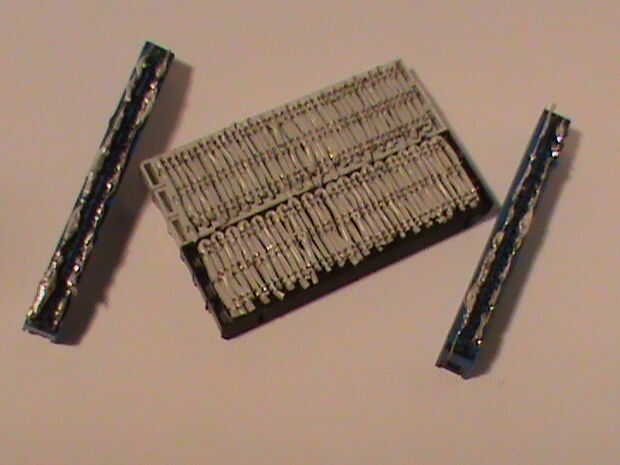 estoy experimentando con máquinas CNC por lo que se me ocurrió esta forma simple y barata para hacer un adaptador de enchufe un cable de impresora en un protoboard. Utiliza un zócalo tirado de una impresora vieja y un zócalo de 40 pines del IC. El zó