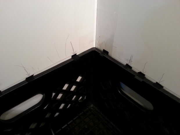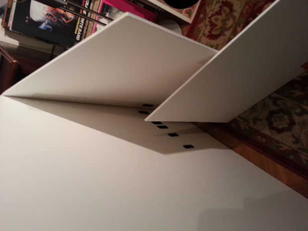 Apliqué las tiras de velcro en la parte posterior de los paneles así como los cajones de plástico. Entonces cuidadosamente montados los paneles en los cajones.