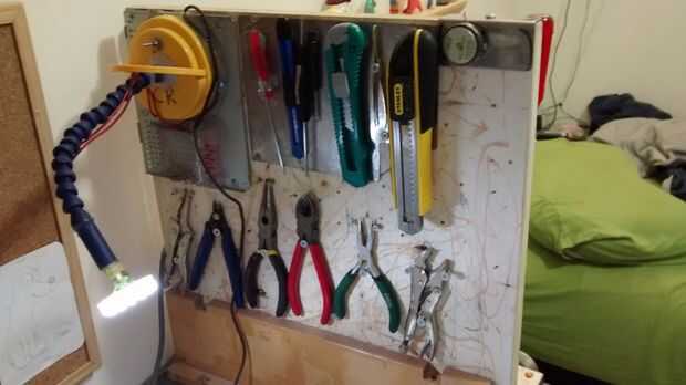 como se puede ver en la segunda foto que puedo conectar a mi pegboard (otro de mis proyectos) que se puede ver a través de mi página de instructables o con este enlace: