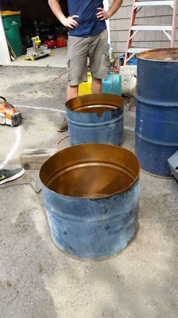 cortar el tambor por la mitad y corte un inserto en el lado de cada tambor i medio corte los insertos de 2.5 pulgadas y 12 pulgadas.