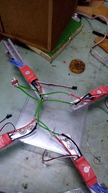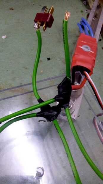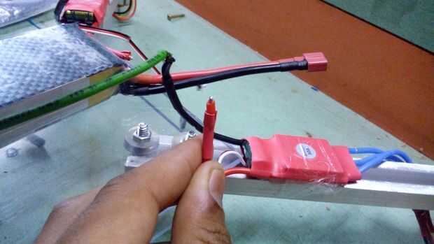2. Desoldar el conector y soldar un cable de puente desde ESC todos en paralelo y por último añadir un único macho en vez de cuatro como se muestra en la figura, para conectar con la batería.