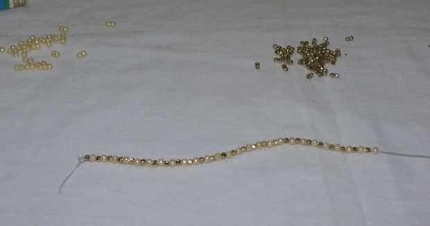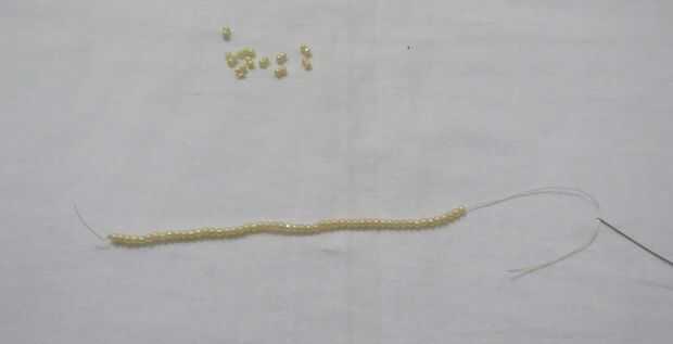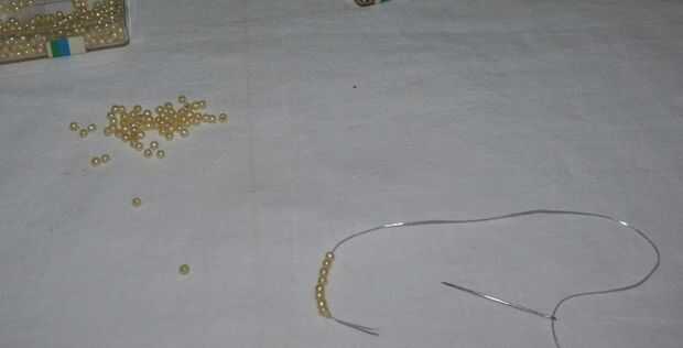 Comenzar a enhebrar perlas/cuentas a través de la aguja.