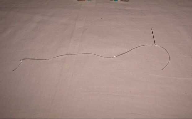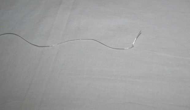 Tome un pedazo de hilo y un nudo dejando 2", por lo que es más fácil conocer una vez que se realizan y pasan a través de una aguja.