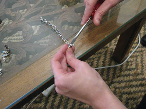 hacer una pulsera de abrigo inspirado en diseñador en el barato usar una pulsera de abrigo de cuero hecha de antemano (de Michael), una perforadora de cuero y latón papel brad sujetadores. Simplemente perfore agujeros en la pulsera de cuero, clip aba