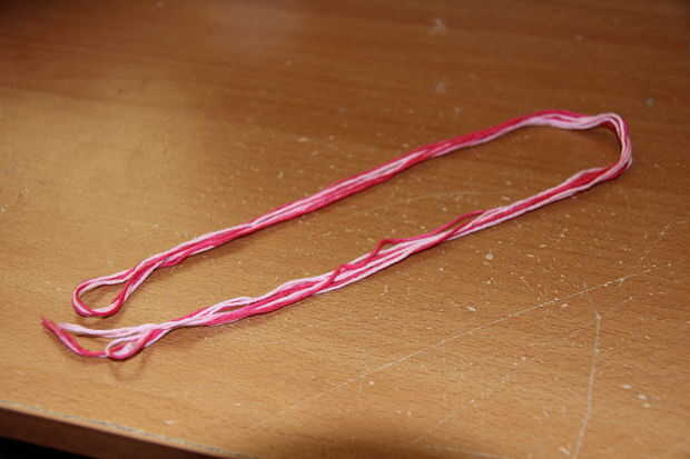 Doblando, me refiero a doblarlo por la mitad y una y otra vez hasta tener una longitud que es doble de la circunferencia de la muñeca con alrededor de dos pulgadas de hilo extra para darle su pulsera un poco de la habitación. Tenga en cuenta, que las dos pulgadas extras también te ayudarán con atar mucho para asegurar la pulsera.