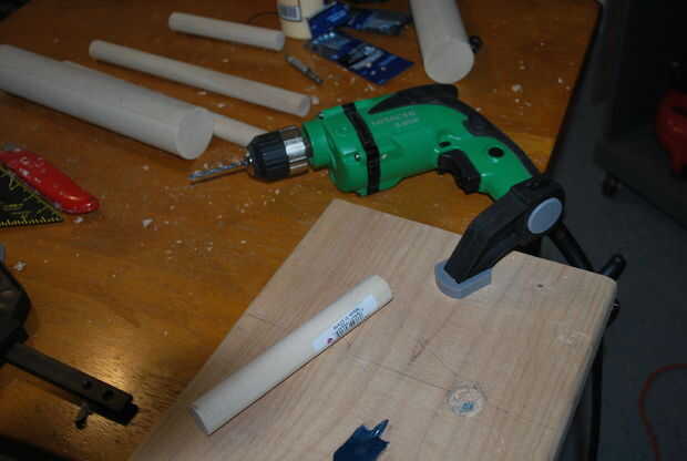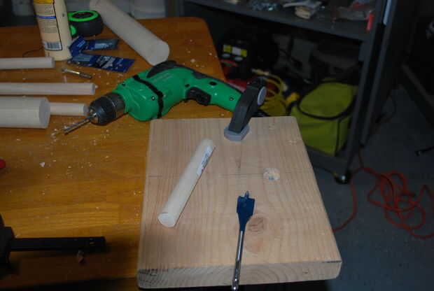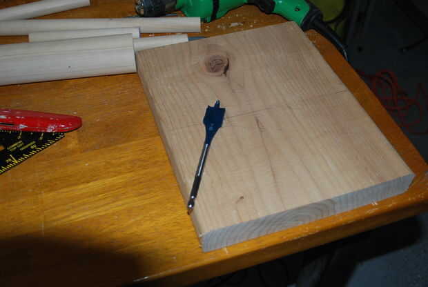 Nota: la punta de la pala se muestra en esta foto no es el tipo de broca recomendado. Recogí la broca daredevil y rápidamente se dio cuenta de éste no la broca adecuada para este proyecto. Por favor, utilice una broca de pala plana. Trace una línea con lápiz por el centro de la placa base. Esto es donde usted perforar los orificios para los tacos.