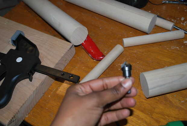 Usando una broca de mostrador fregadero puede fijar el tornillo en la espiga para dejar espacio para el relleno de madera. Contador se hunde el tornillo es a su discreción.