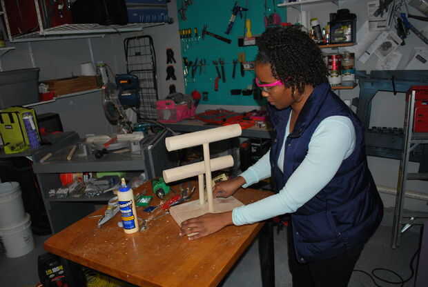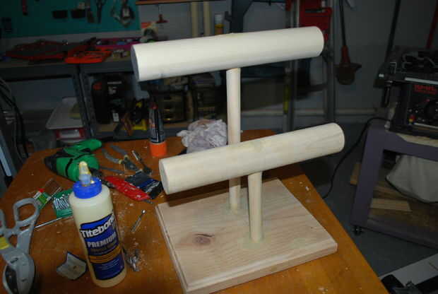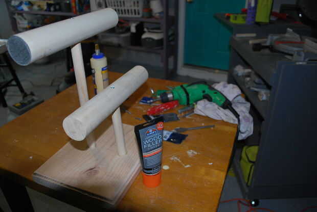 Utilizar masilla para madera para rellenar los huecos entre el agujero creado por la broca del fregadero de contador en la parte superior de la espiga 2".