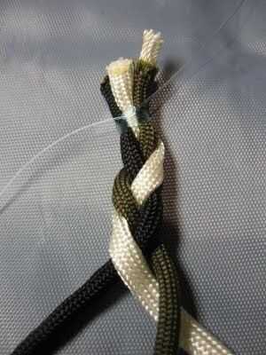 DIY pulsera eslinga para arco parte 1 Paracord trenza pasos, parte 2 Cómo hacer parte de cuero de arco. (6 / 12 paso)