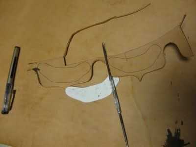 hice un esbozo de la pieza de cuero de la eslinga comercialmente hecha con una vieja caja de cereal como material de la plantilla.