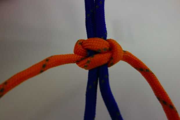Finalmente, tire de la hebra derecha a través del bucle de debajo y tire para apretar. La segunda puntada de la cobra está completa!
