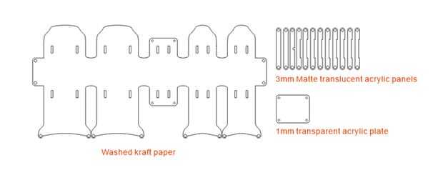 1. láser corta el tablero con el dibujo. Después del corte del laser, puede obtenerse siguiendo los componentes.