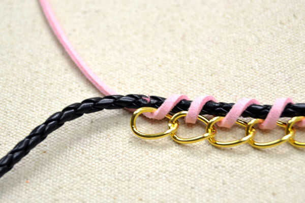 Cuando haya terminado el último eslabón, coser los dos cables juntos como al principio.