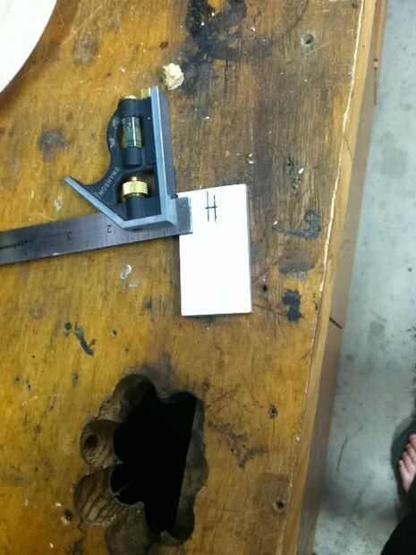 2. Con un rotulador y una escuadra marca su centro. También Marque el centro en la parte superior de la barra de acción.
