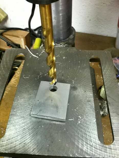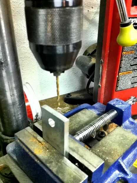 1. Taladro su primer agujero de 3/8" en la barra de acción donde marcaste. una pinza puede ser necesaria.