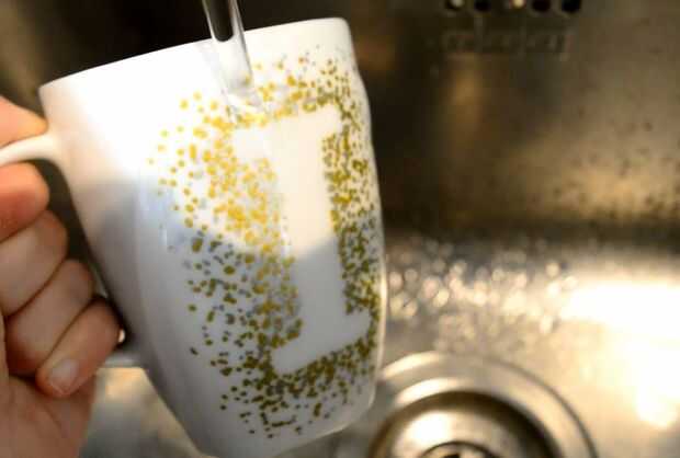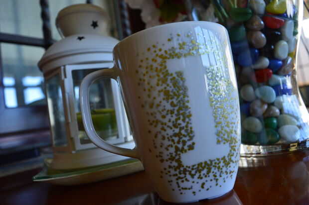 Materiales necesarios:Tazastickers de Scrapbook o cintaplumas de sharpie (sharpies normales se lavan en el lavavajillas y en el tiempo) a base de aceitePaso 1: Poner las pegatinas o cinta Colocar calcomanías scrapbook o cinta donde querían en la taza