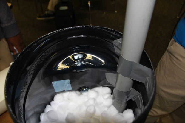 Paso 1: para que la subida de agua hacia arriba a través del algodón como deseamos, tenemos que unir un tubo a través del cual las personas vierten el agua sucia. Elegimos una tubería de 18 pulgadas. Era lo suficientemente grande para una cantidad conveniente de agua para verter a través sin tomar demasiado espacio. Elegimos unir la tubería con una cinta en la jarra.