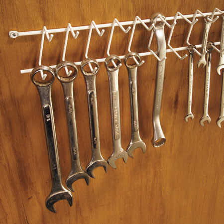 Este es un Hack Re-Purposed DIY que surgió el año pasado para hacer un estante de esmalte de uñas de una bandeja de gran tamaño cubiertos. La rejilla es super robusta y puede montarse fácilmente en una pared a través del alambre de malla de forro o i