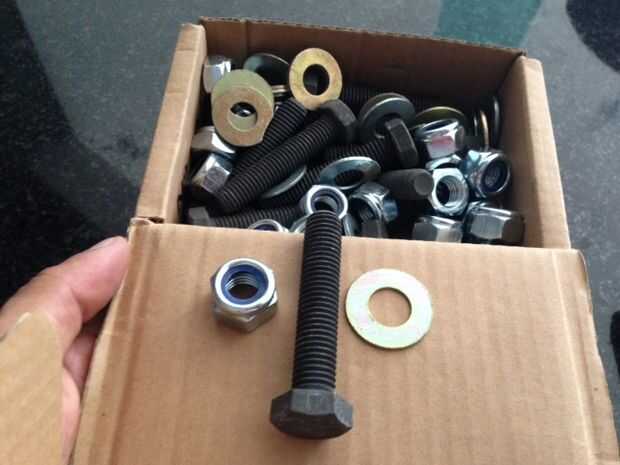 Foram 30 parafusos 14 x 70, 30 porcas com trava e 60 arruelas.