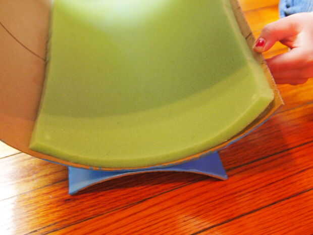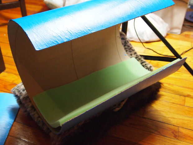 * Nota: Si decides pintar el interior de la casa de gato - tenga cuidado! He añadido un poco de agua a la pintura acrílica para hacer hacia fuera un poco y entonces pintó en. Como resultado, la parte redondeada superior comenzó a expandir y pierden parte de su forma bien redondeada. Para solucionarlo, sujeta la parte superior curvada hasta la curva inferior durante unos 15 minutos y recuperó su forma.