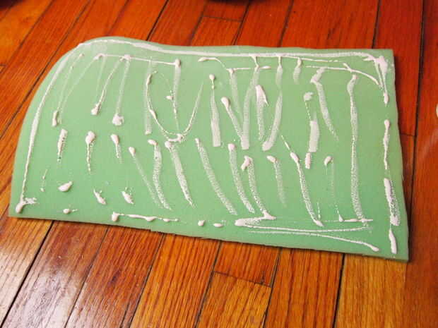 Si usted tiene un pedazo de hule espuma para agregar a la parte inferior, usted puede pegar en este momento o antes de pegar la pieza principal a la base.