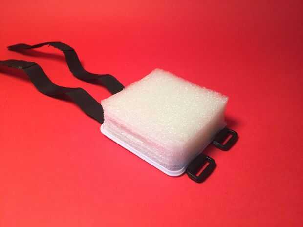 Para hacer la muñeca montaje más cómodo y más estable que caliente pega dos piezas de espuma suave (8 x 8 x 1, 5 cm) debajo de él. Es el material utilizado para proteger cosas frágiles en cajas de envío, pero si no lo encuentras, puedes usar una esponja o algo suave como eso.