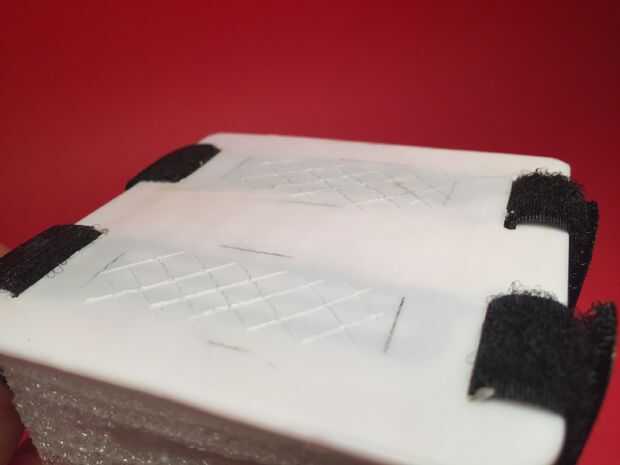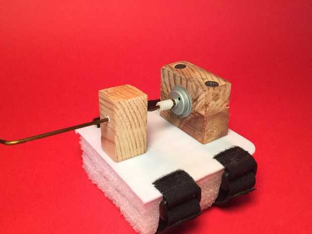 Antes de hacerlo, utilicé el cuchillo xacto para hacer algunos rasguños en el plástico (foto 2). Esto ayudará que el pegamento se adhiera mejor a la superficie del plano de plástico. También he insertado un trozo recto de alambre de metal en el motor y en el "cojinete de plástico" para colocar correctamente las piezas de madera.