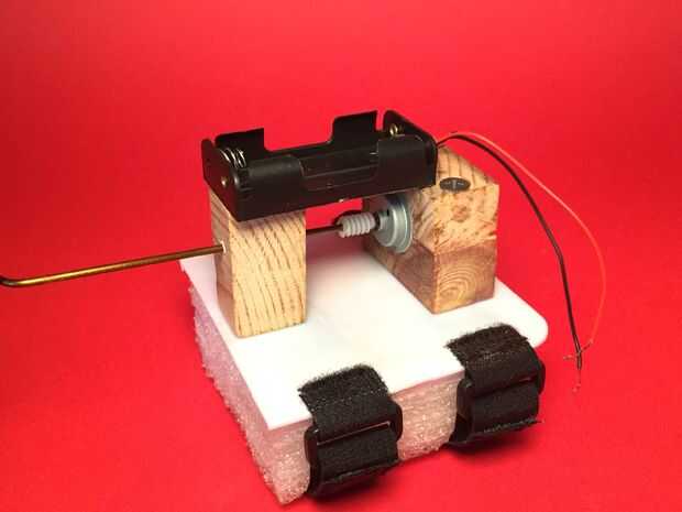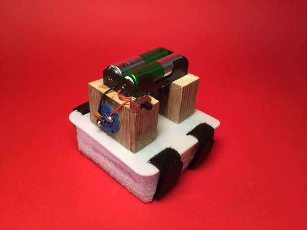 Una vez que el motor se pega en su lugar, usé otra vez el pegamento caliente para garantizar una caja de batería 2xAA sobre él.