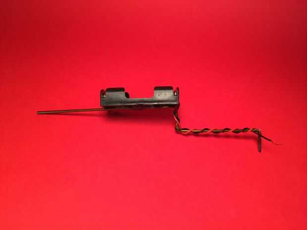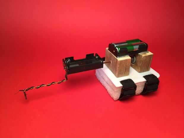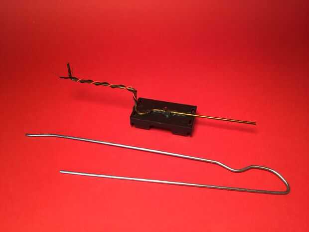 Finalmente caliente pegué una pilas 2AA en el extremo de la sección de 11cm y torció sus hilos alrededor de la parte restante de la metálica.