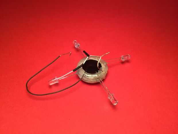 Ahora es el momento de la soldadura de 4 LEDs azules en forma de Cruz.