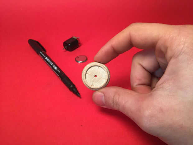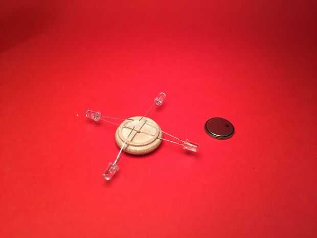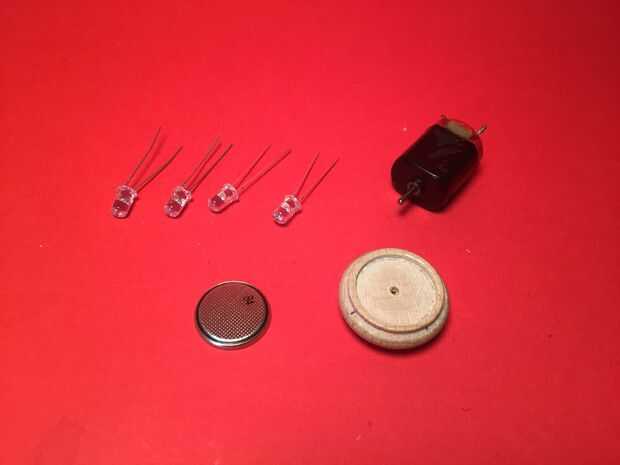 Podría caliente pegamento que los LEDs cruzan en un pequeño engranaje de plástico que se pueden encontrar fácilmente en cualquier juguete roto y pueden ser montados perpendicularmente en el motor, pero desde que tuve una pequeña perilla de madera (de la dimensión perfecta) poner alrededor, decidí usar.