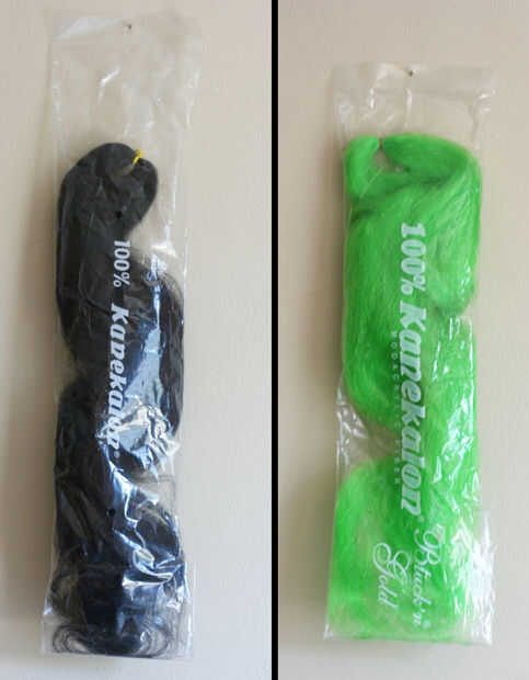 -Sintética del pelo, dos colores diferentes esta vez (yo uso kanekalon) -Peine de dread -Una percha -Tijeras -Una pluma (opcional, que lo puedes hacer sin ella)