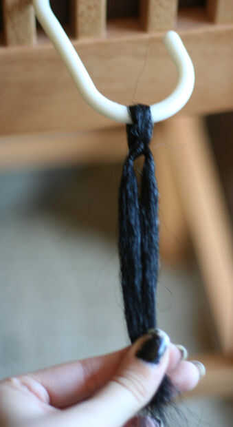 Tome su suspensión y envolver el pelo sintético alrededor de él. Hacer el nudo. (Fig. 3) Backcomb entonces la parte superior como haría cualquier otro temor. (Foto 4)