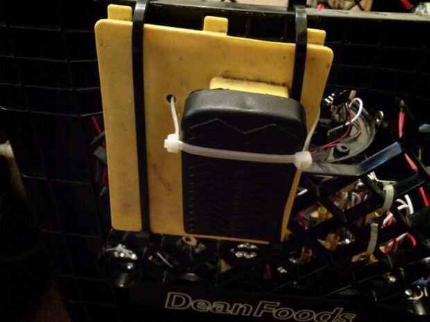 Yo quería tener una emergencia botón de parada. Lo único que tenía a mano era el pedal del acelerador Jeep. Así que montado en la parte posterior de la caja con un cintillo que le mantenga en la posición on. Estaba mi cortador práctico cuando el Jeep y cortar el cintillo para cortar la tensión del motor si algo salió mal. No ha sido necesario hasta ahora.
