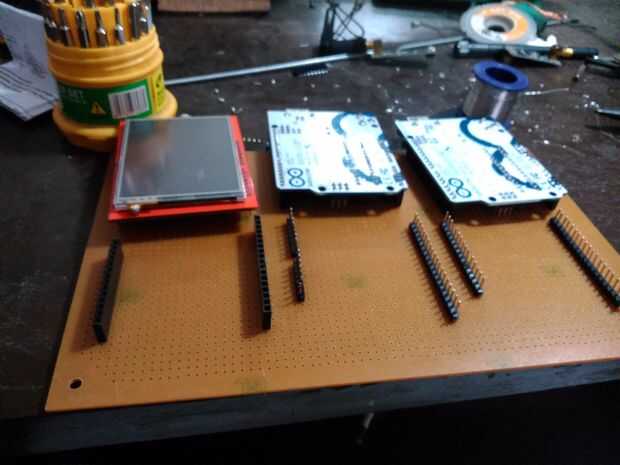 Otra vez tuve que agregar el zócalo adaptador de junta más tarde que en este caso he utilizado cables de puente para conectar a la arduino uno. El TFT LCD conectado con el arduino se puede controlar mediante el envío de datos en serie de los formularios windows forms al puerto serial de la arduino uno.