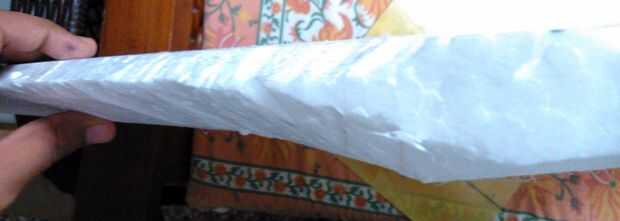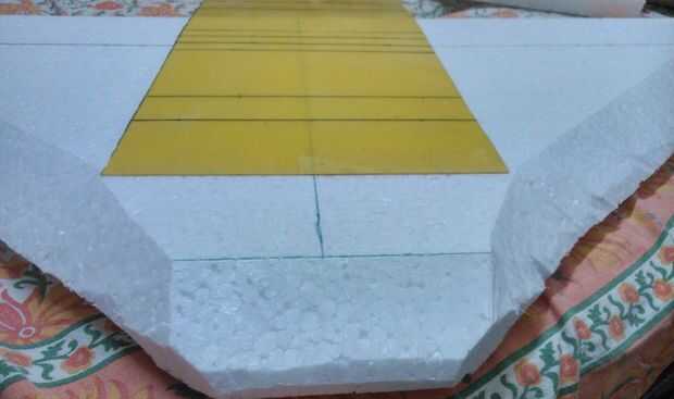 Uno de los principales problemas que encontró mientras que forma la espuma era mantener el cortador recto, hacerlo utiliza una hoja de fibra de vidrio y colocó a través de la línea donde tuve que cortar. De esta manera mi cortador de alambre caliente a lo largo de un camino recto sólo. Usted puede utilizar una escala o una regla para hacerlo, o cualquier superficie dura plano con un borde recto sería suficiente.
