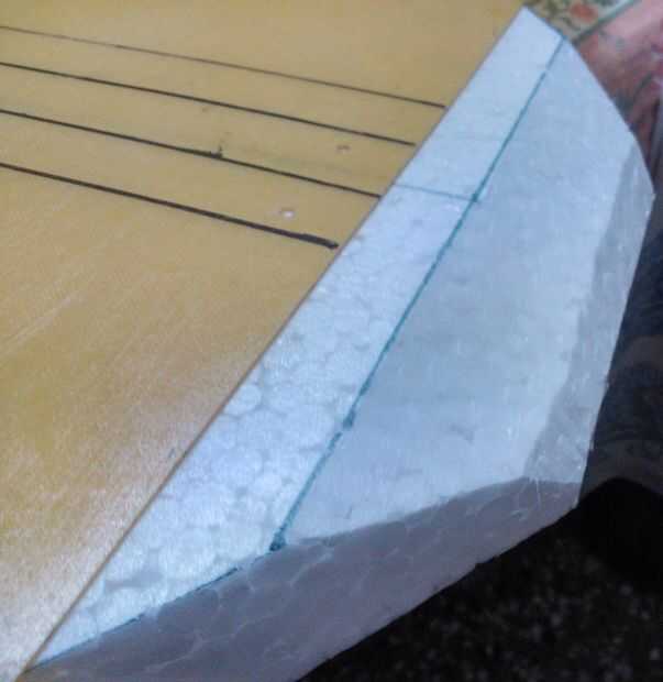 Comenzó a cortar con la punta, luego hice los bordes. Aviso no corté el borde posterior del ala, pero usted puede hacerlo si su material de construcción es fuerte, puesto que utiliza espuma, tuve dejar de lado para unir las superficies de control.